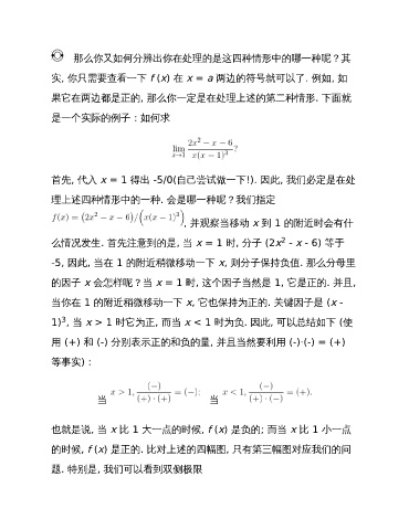 -5, 因此, 当在 1 的附近稍微移动一下 x, 则分子保持负值. 那么分母里