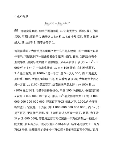 直观感受, 用实际的大的 x 值做检验, 来看看在例子 p (x) = 3x - 1