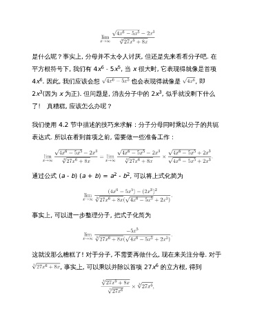 平方根符号下, 我们有 4x - 5x , 当 x 很大时, 它表现得就像是首项