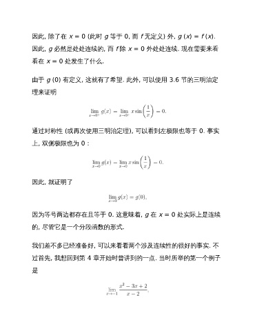 由于 g (0) 有定义, 这就有了希望. 此外, 可以使用 3.6 节的三明治定