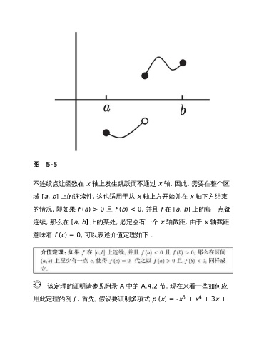 连续, 那么在 [a, b] 上的某处, 必定会有一个 x 轴截距. 由于 x 轴截距