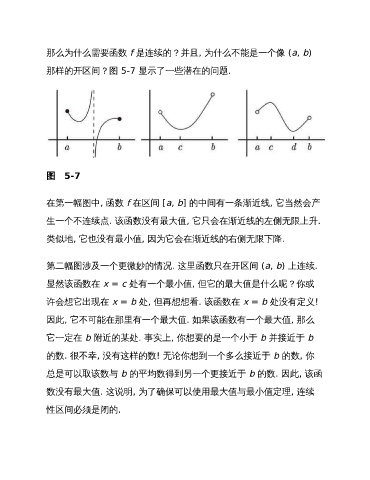 第二幅图涉及一个更微妙的情况. 这里函数只在开区间 (a, b) 上连续.