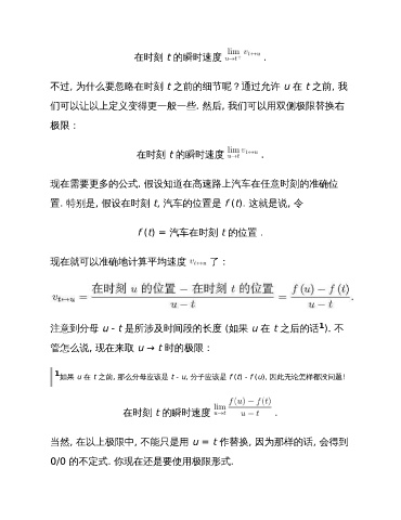 置. 特别是, 假设在时刻 t, 汽车的位置是 f (t). 这就是说, 令