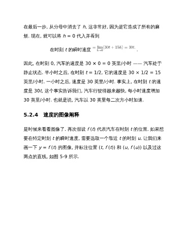 英里/小时. 一小时之后, 速度是 30 英里/小时. 事实上, 在时刻 t 的速