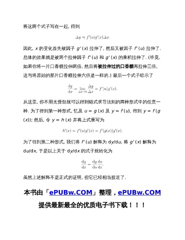 因此, x 的变化首先被因子 g' (x) 拉伸了, 然后又被因子 f' (u) 拉伸了.