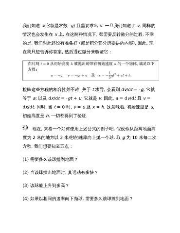 dx/dt. 同时, 当 t = 0 时, v = u 及 x = h. 这意味着, 初始速度是 u,