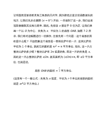 画一个以 O 为中心、夹角为 x、半径为 1 的扇形 OAB, 如图 7-2 所