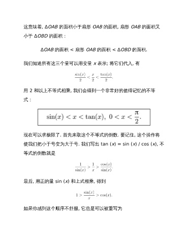 ΔOAB 的面积 < 扇形 OAB 的面积 < ΔOBD 的面积.