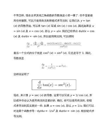 (x) 的导数开始. 可以将 tan (x) 写成 sin (x) / cos (x), 因此如果设 u