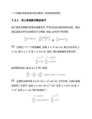 由于现在你需要对更多的函数求导, 牢牢记住如何使用乘积法则、商法