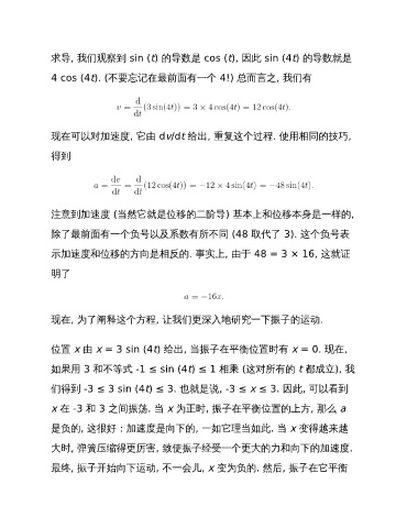 求导, 我们观察到 sin (t) 的导数是 cos (t), 因此 sin (4t) 的导数就是