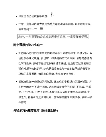 把你自己总结的所有重要的知识点和公式都写出来, 以便记忆. 虽