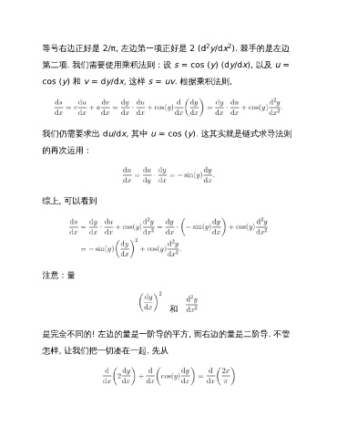 cos (y) 和 v = dy/dx, 这样 s = uv. 根据乘积法则,
