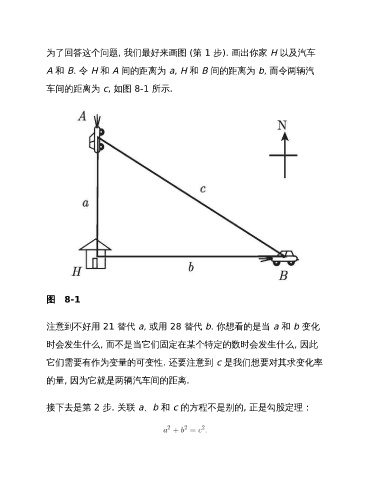 接下去是第 2 步. 关联 a、b 和 c 的方程不是别的, 正是勾股定理: