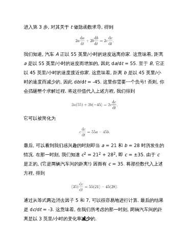 是 dc/dt = -3. 这意味着, 在我们所考虑的那一时刻, 两辆汽车间的距