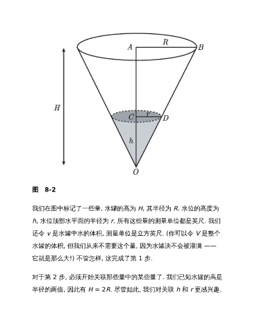 h, 水位顶部水平面的半径为 r. 所有这些量的测量单位都是英尺. 我们