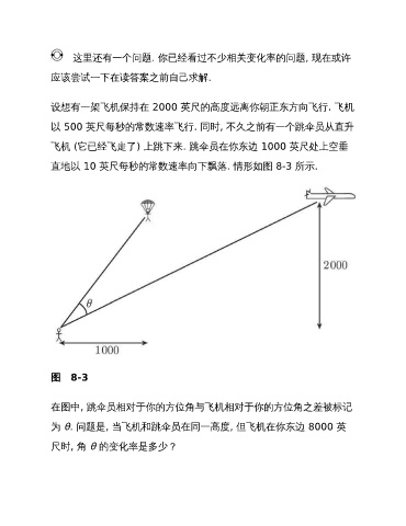 为 θ. 问题是, 当飞机和跳伞员在同一高度, 但飞机在你东边 8000 英