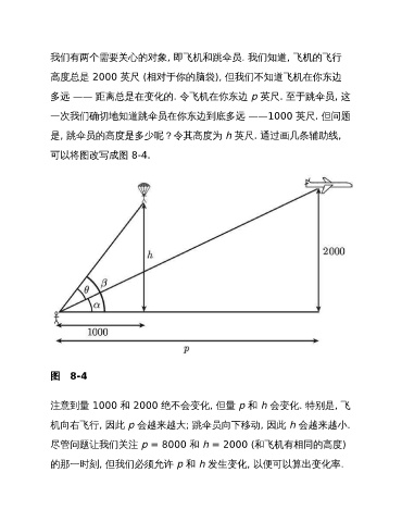 多远 —— 距离总是在变化的. 令飞机在你东边 p 英尺. 至于跳伞员, 这