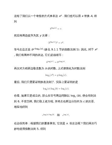 等号左边正是 b y log (x) (参见 9.1.1 节的指数法则 5). 因此, 对于 x y