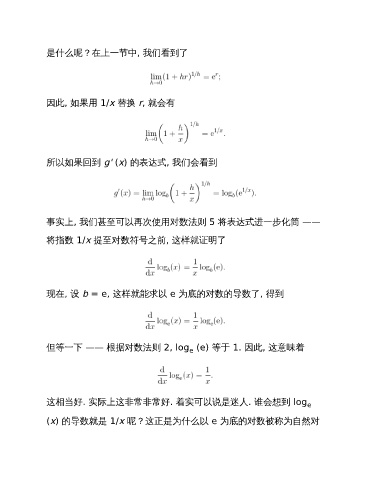 (x) 的导数就是 1/x 呢?这正是为什么以 e 为底的对数被称为自然对