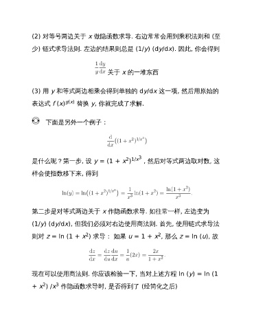 + x ) /x 作隐函数求导时, 是否得到了 (经简化之后)