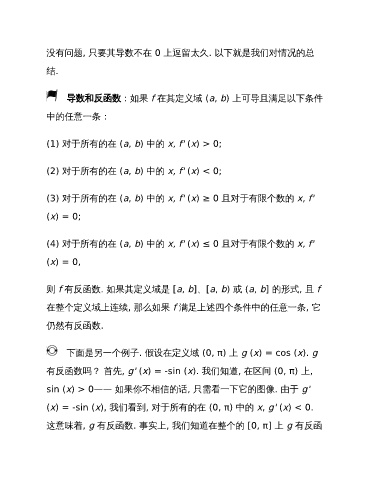 导数和反函数:如果 f 在其定义域 (a, b) 上可导且满足以下条件
