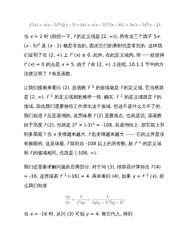 f' (x) = 0 的点是 x = 5. 由于 f 在 [2, ∞) 上连续, 10.1.1 节中的方