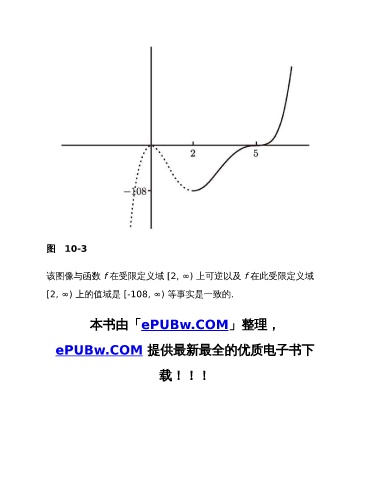 图 10-3 该图像与函数 f 在受限定义域 [2, ∞) 上可逆以及 f 在此受限定义域 [2, ∞) 上的值域是 [-108, ∞) 等事实是一致的. 本书由「ePUBw.COM」整理, ePUBw.COM 提供最新最全的优质电子书下 载!!!