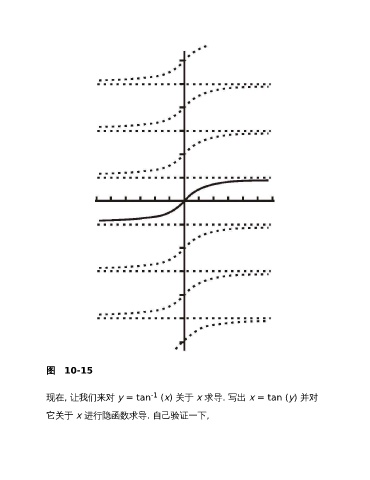 图 10-15 -1 现在, 让我们来对 y = tan (x) 关于 x 求导. 写出 x = tan (y) 并对 它关于 x 进行隐函数求导. 自己验证一下,