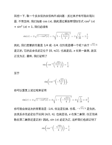 回想一下, 取一个反余弦的余弦构不成问题:反过来才有可能出现问