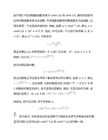cosh (y) = (e + e ) /2. 现在, 你可以用一个小技巧来求解 y. 令 u