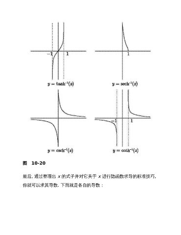 图 10-20 最后, 通过整理出 x 的式子并对它关于 x 进行隐函数求导的标准技巧, 你就可以求其导数. 下面就是各自的导数: