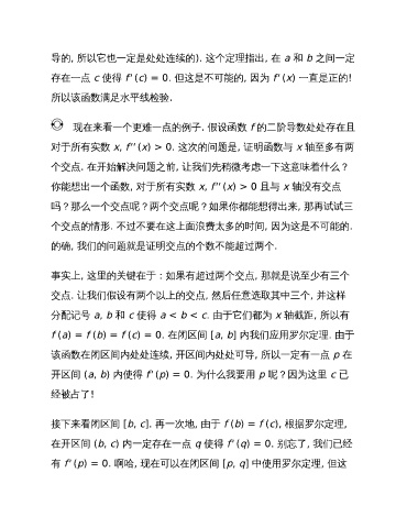存在一点 c 使得 f' (c) = 0. 但这是不可能的, 因为 f' (x) 一直是正的!