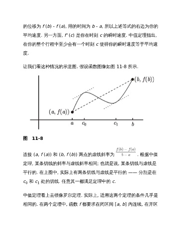 平均速度. 另一方面, f' (c) 是你在时刻 c 的瞬时速度. 中值定理指出,