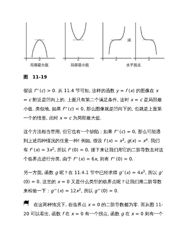 在这两种情况下, 在临界点 x = 0 的二阶导数都为零. 而从图 11-