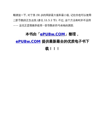 顺便提一下, 对于第 (9) 步的局部最大值和最小值, 记住你也可以使用 二阶导数的正负去找 (参见 11.5.2 节). 不过, 这个方法有时并不适用 —— 这也正是我推荐使用一阶导数的符号表格的原因. 本书由「ePUBw.COM」整理, ePUBw.COM 提供最新最全的优质电子书下 载!!!