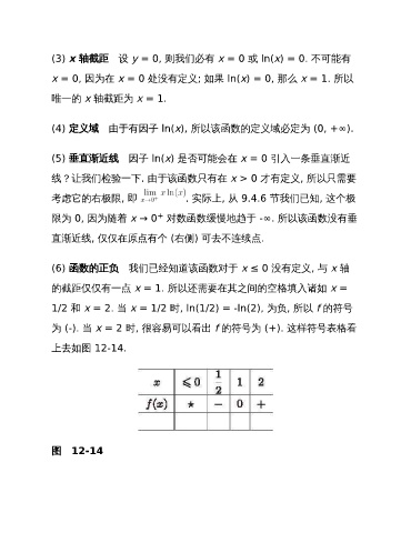(4) 定义域 由于有因子 ln(x), 所以该函数的定义域必定为 (0, +∞).