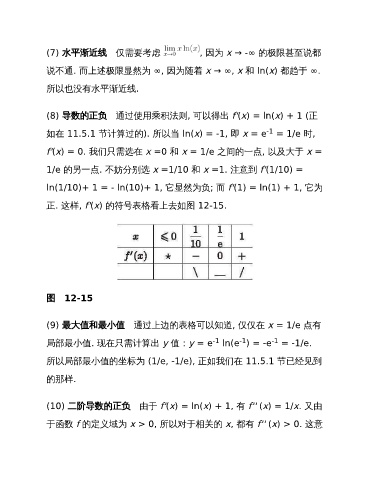 (8) 导数的正负 通过使用乘积法则, 可以得出 f'(x) = ln(x) + 1 (正