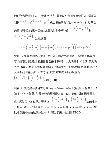 (9) 已经看到点 (5, 0) 为水平拐点. 其他两个点则要麻烦许多, 需要分