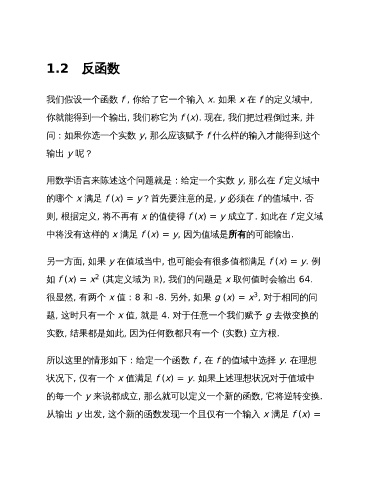 状况下, 仅有一个 x 值满足 f (x) = y. 如果上述理想状况对于值域中