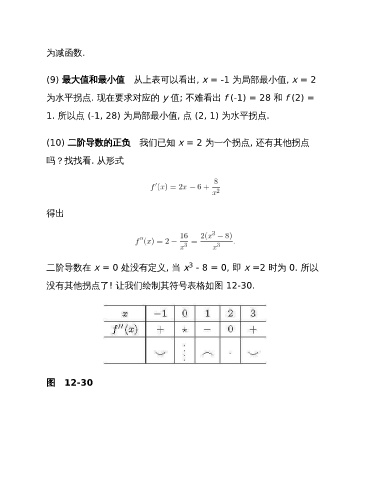 (9) 最大值和最小值 从上表可以看出, x = -1 为局部最小值, x = 2