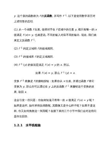 y. 这个新的函数称为 f 的反函数, 并写作 f . 以下是使用数学语言对