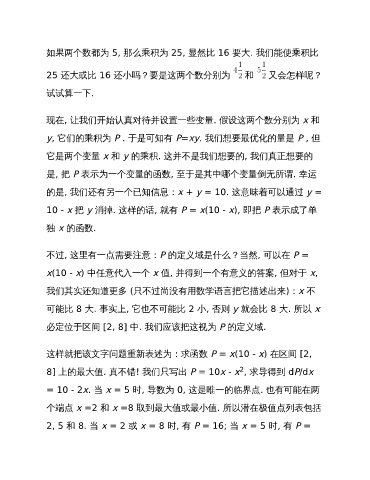 y, 它们的乘积为 P . 于是可知有 P=xy. 我们想要最优化的量是 P , 但