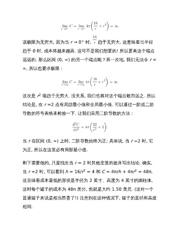 当 r =2 时, 可以看到 h = 16/r = 4 和 C = 4πrh + 4πr = 48π.