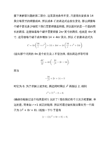 寸. 这导致每个罐子成本增加 14 × 4πr 美分, 所以 C 的新表达式为