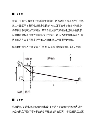 也就是说, s 是电缆在浅海区的长度, t 则是其在深海区的长度; 此外,