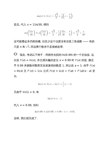 现在, 考虑以下例子:用线性化找到 ln(0.99) 的一个近似值. 这