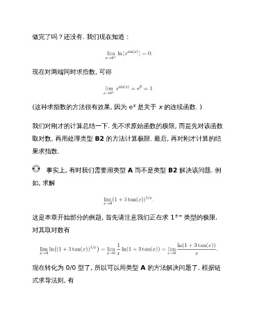 我们对刚才的计算总结一下. 先不求原始函数的极限, 而是先对该函数