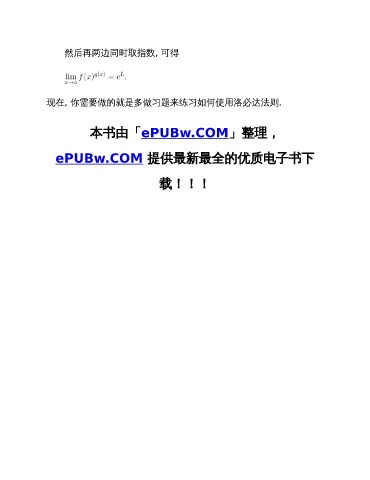 然后再两边同时取指数, 可得 现在, 你需要做的就是多做习题来练习如何使用洛必达法则. 本书由「ePUBw.COM」整理, ePUBw.COM 提供最新最全的优质电子书下 载!!!
