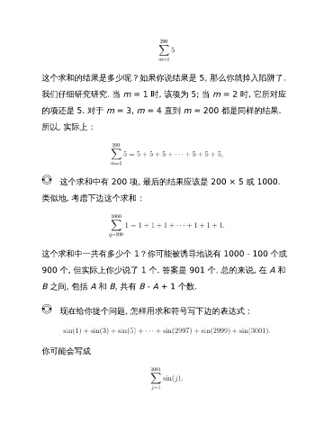 这个求和中有 200 项, 最后的结果应该是 200 × 5 或 1000.